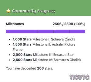 The Festival of Stars rewards have now been delivered to all contributors! ✨ All Fallen Stars have been transformed into Stardust, which you can now sell for gold.